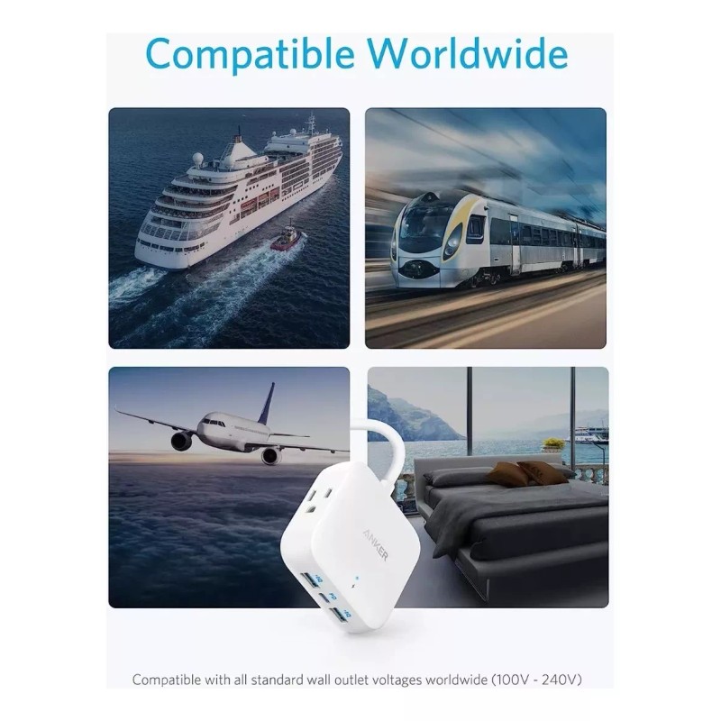 PowerPort Strip PD 2 mini es compatible con todos los voltajes de salida de pared estándar en todo el mundo (100 V - 240 V).