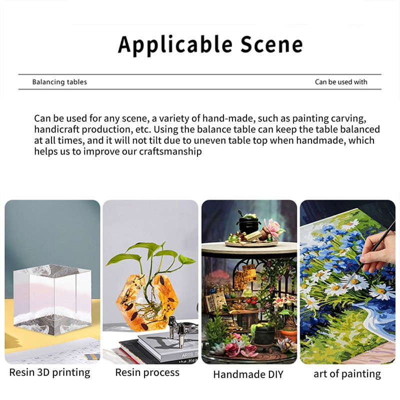 - Whether you're working in a home studio, a handicraft store, or showcasing your creations at craft exhibitions, this leveling table provides a reliable surface for achieving precise resin results.
