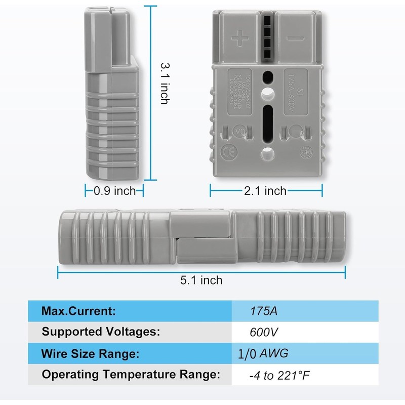 - [Product Material]:The Battery Quick Connect is constructed from durable, flame-retardant PC material, with silver-plated copper terminal pins that provide excellent conductivity. This ensures stable voltage and current, while also offering high temperature and corrosion resistance.