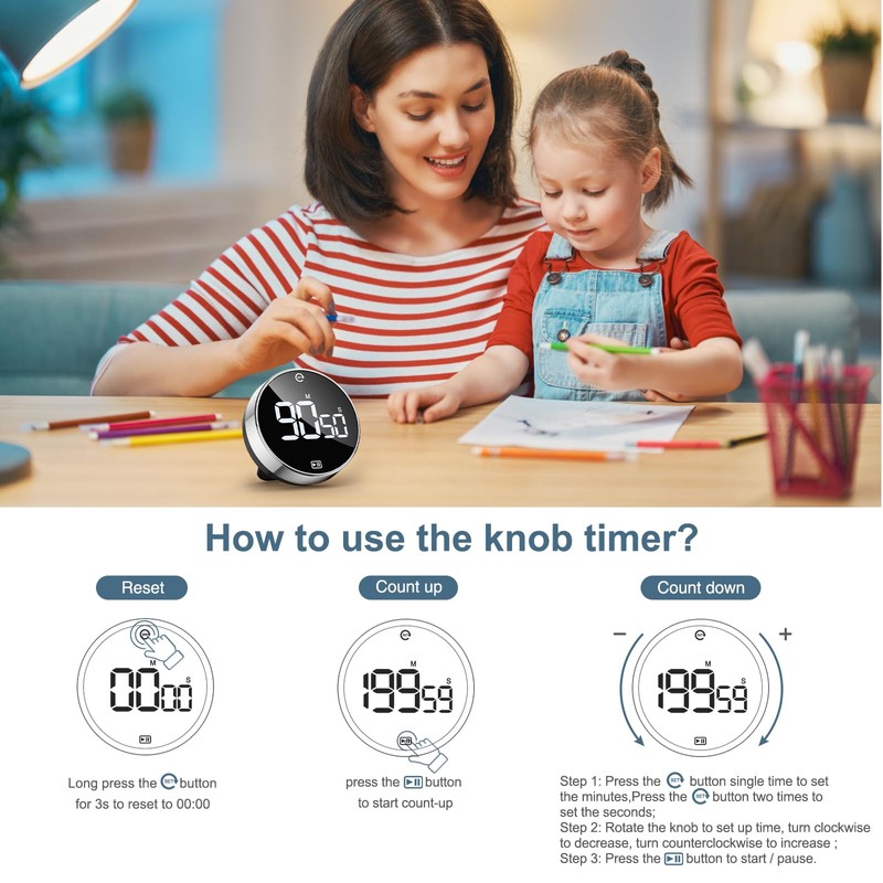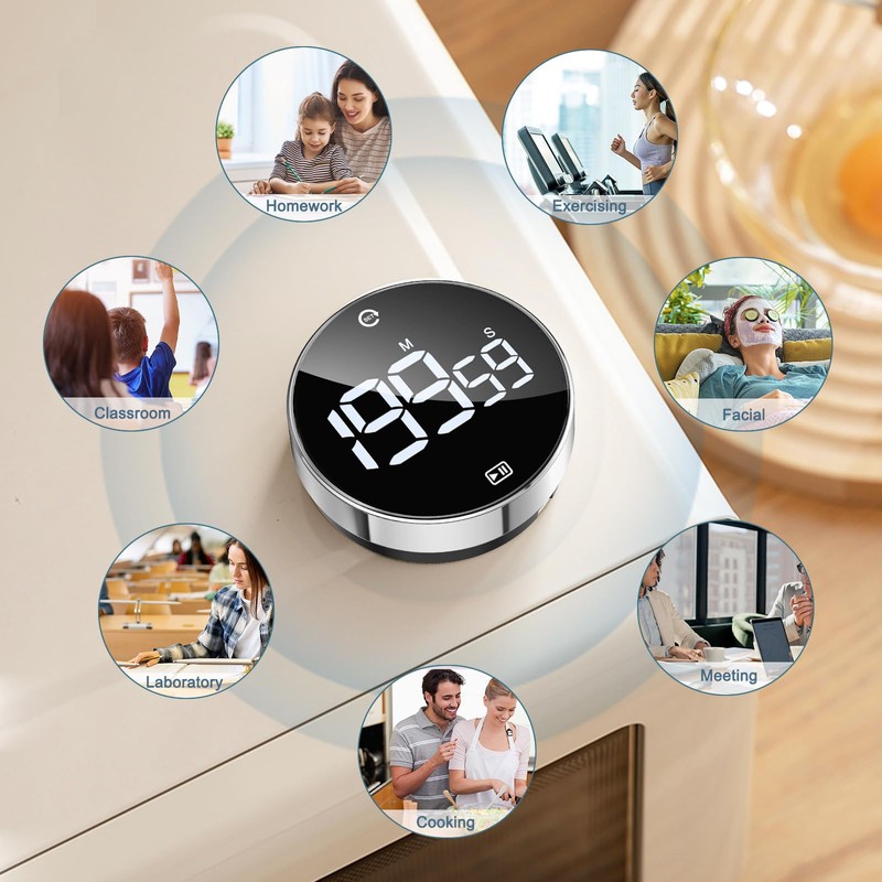 - Multi-scenario Application: The new generation digital rotary timer is suitable for students and the whole family; Whether it's a kitchen cooking timer, for work, study, sports, fitness/yoga, beauty, games, etc; it can help you to accurately time and effectively manage your time; It can also help your children to develop time awareness and balance entertainment and learning