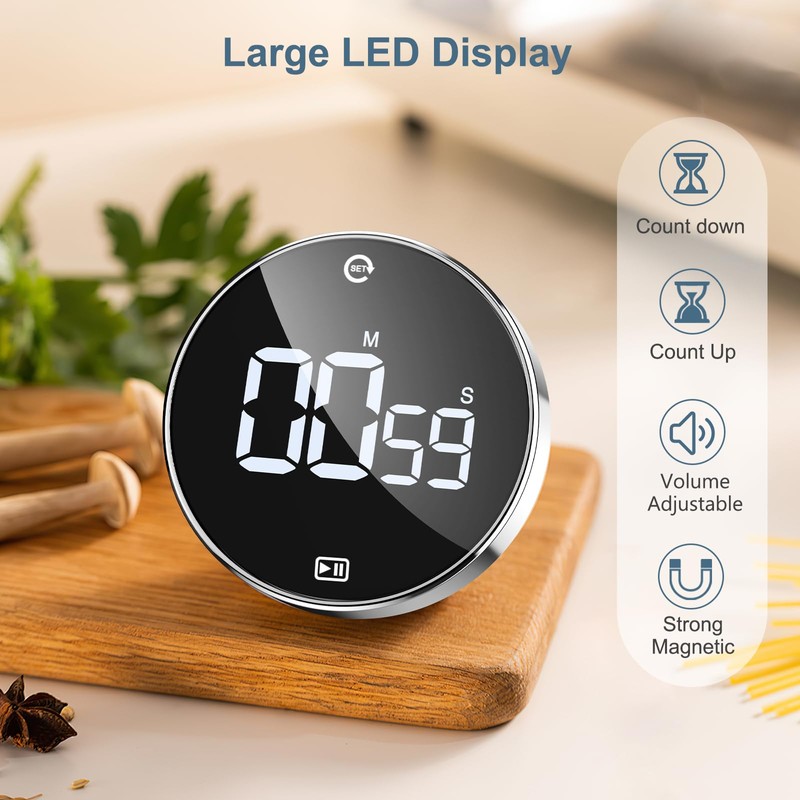 Ankilo Newest Digital Kitchen Timer, Timer for Kids with Large LED Display, Digital Magnetic Timer, Countdown and Countup Timer with Silent Mode, Volume Adjustable, Timer for Classroom