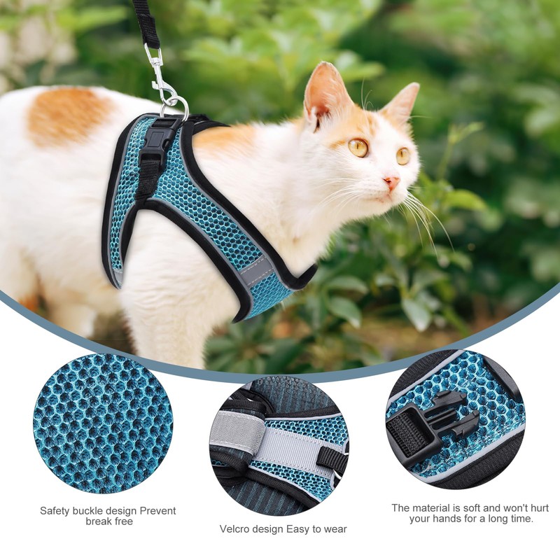 - Soft and Breathable: Cat harness and leash effectively prevents injuries and provides a comfortable protective layer.Crafted from soft and breathable mesh fabric, this vest is ultra-thin, breathable, and exceptionally comfortable, making adjustable dogs harness ideal for summer strolls. The vest-style design disperses pressure across the shoulders and chest, ensuring even distribution of force without the risk of suffocation.