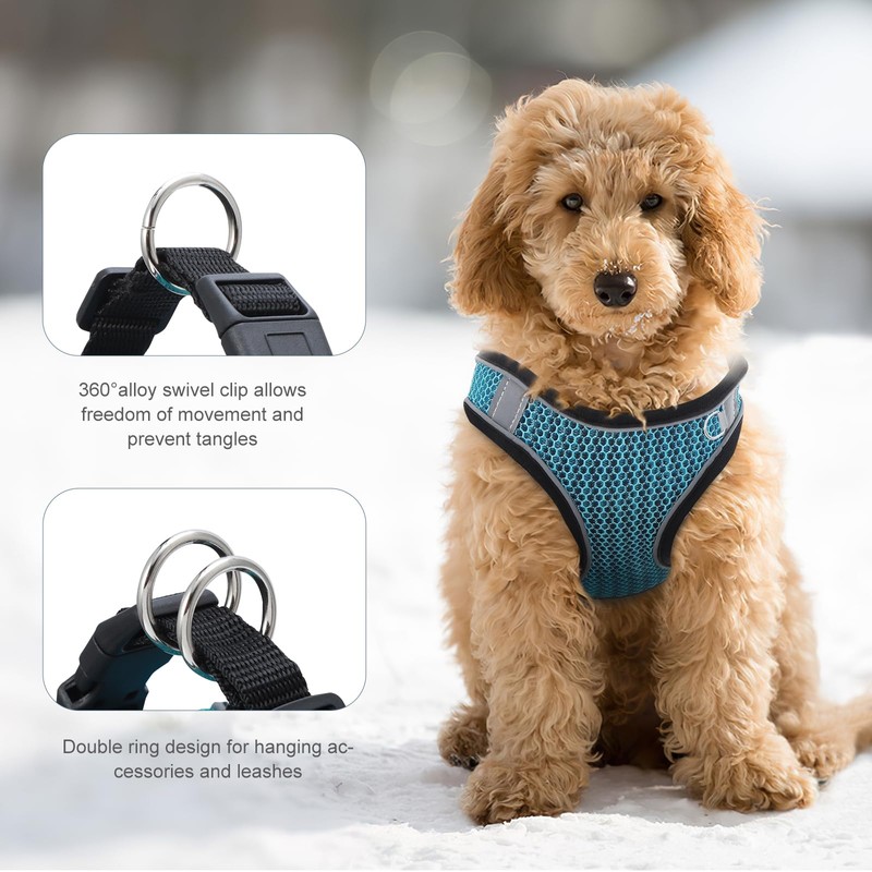 Ankilo Upgraded Harness with Leash Set, Escape Proof Dog Vest Harnesses, Vest Harnesses with Soft Mesh and Reflective Bands, No Pull Small Dog Harness for Cats and Small Dogs (Lake-Blue, XS)