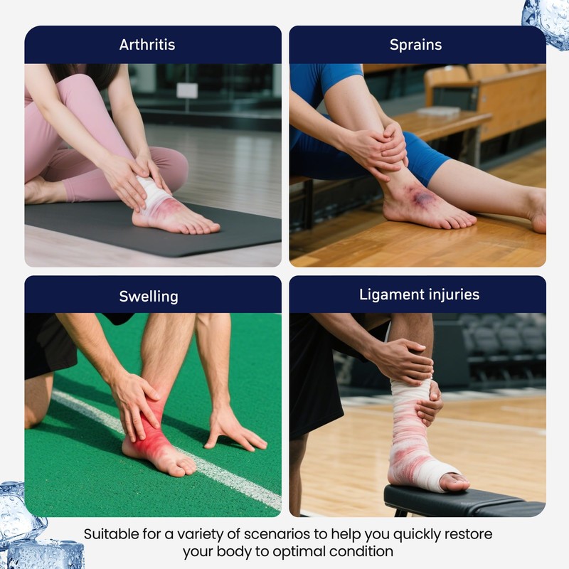 - Discover the relief this stretchable, single-piece, form-fitting, reusable cold ankle wrap provides. It's the perfect fit for everyone and can be comfortably worn on either ankle. This ankle ice pack wrap can also serve as a cold therapy sock, relieving discomfort from plantar fasciitis. It is an effective foot ice pack for post-workout recovery and an excellent ice pack for foot and ankle related ailments.