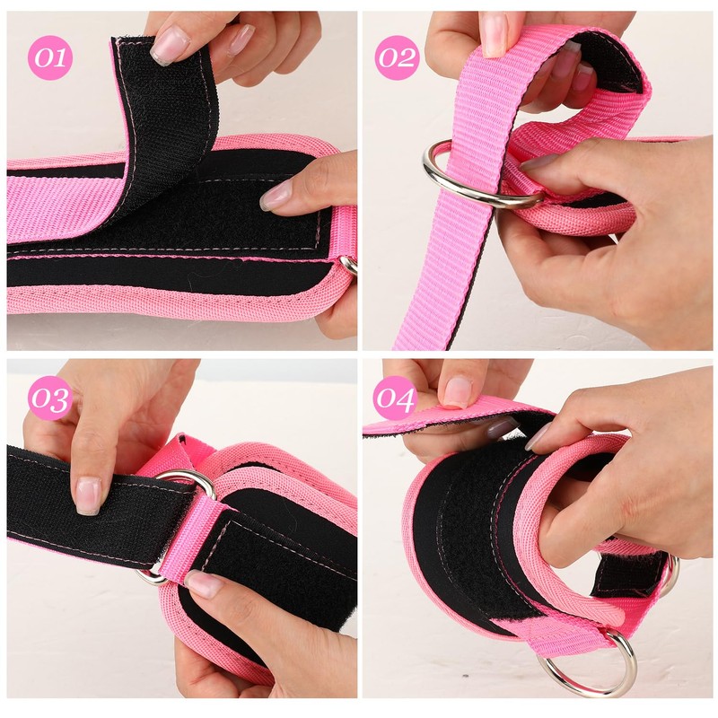 - Strong:Cable kick back ankle straps with the stainless steel robust double d rings,by double stitching fixed,attachment allows for easy and quick attachment to the cable machine