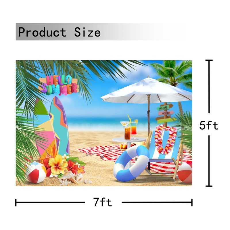 ANKOLLE 7x5ft Hello Summer Hawaiian Beach Backdrop for Photography Tropical Flower Hawaiian Party Decorations Blue Sky Ocean Palm Leaves Background Supplies Background Photo Booth