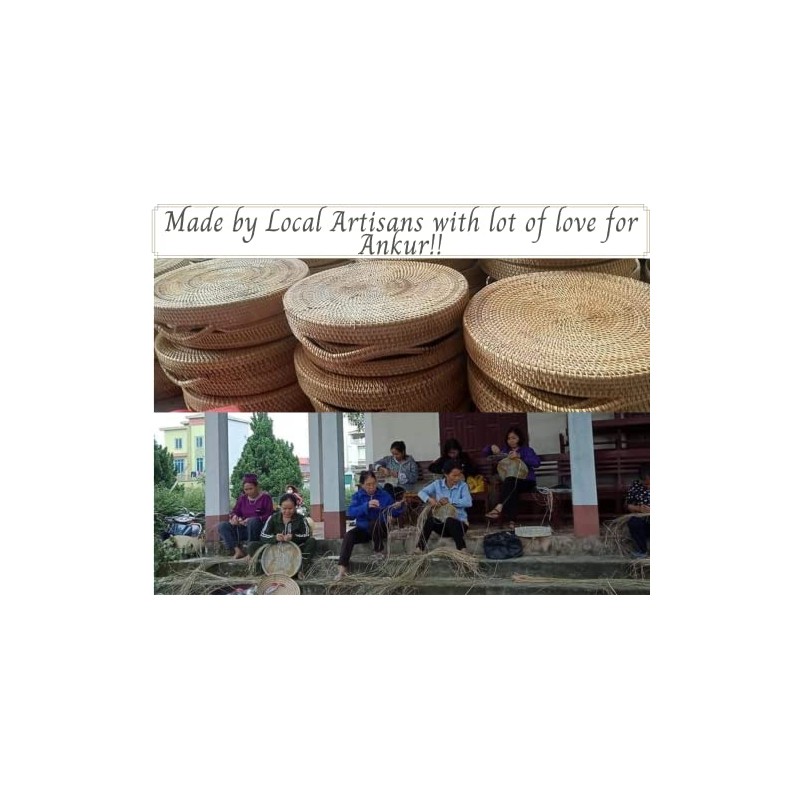ANKUR Round Rattan- Serving Tray-Decorative Woven Ottoman-Trays with Handles for Coffee Table Natural Basket Wave Tray (L- 13.7 Inch & M-11.8 Inch)