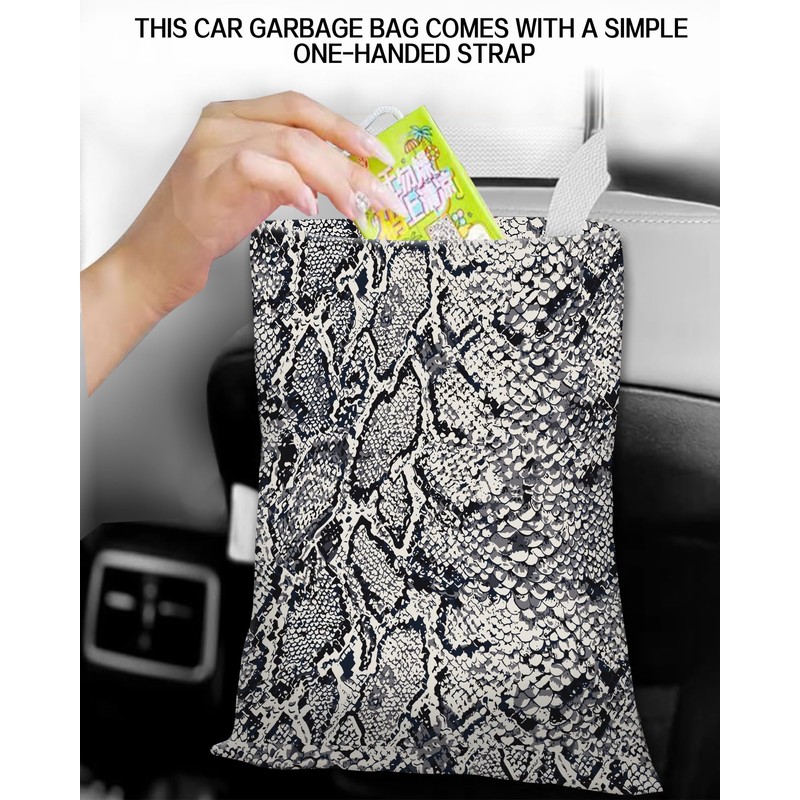 ANKVRP Car Garbage Can, Car Trash Bag, Car Garbage Bag, Hanging Car Trash Can for Car Accessories, Vehicle, Travelling, Camping, Cute Car Back Seat Organizer, Snake Skin Leopard
