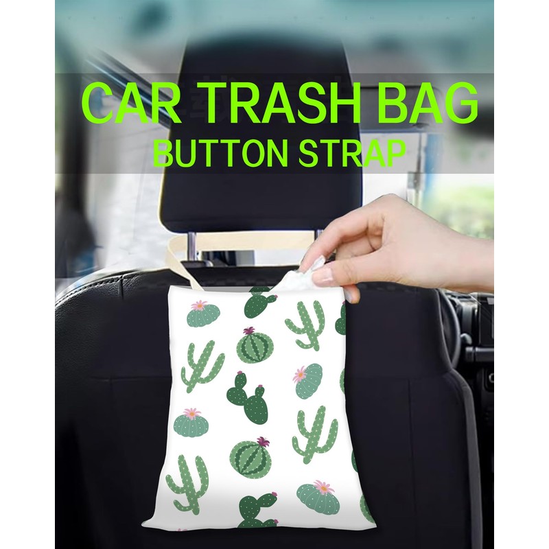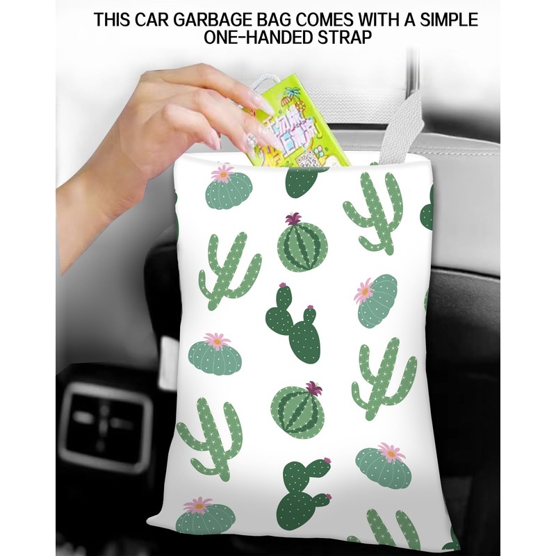 ANKVRP Car Trash Can, Durable Hanging Car Trash Garbage Bag, Cute Automotive Garbage Cans Organizer, Cute Green Cactus