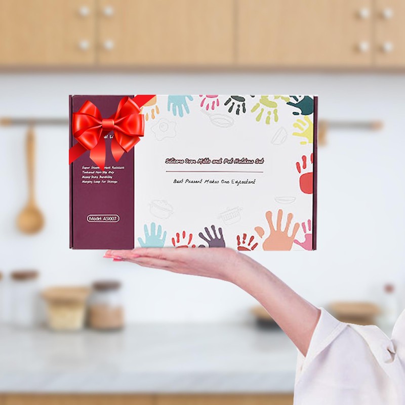 - Hochwertiges Küchenzubehör: BPA-frei & hitzebeständig schützt dieses stilvolle Set (Ofenhandschuh + Topfuntersetzer) Hände und Oberflächen beim Backen, Grillen oder Braten. In einer eleganten Geschenkbox verpackt – perfekt für Muttertag, Weihnachten, Thanksgiving oder Einweihungsfeiern sowie als praktischer Küchenhelfer für Profis.