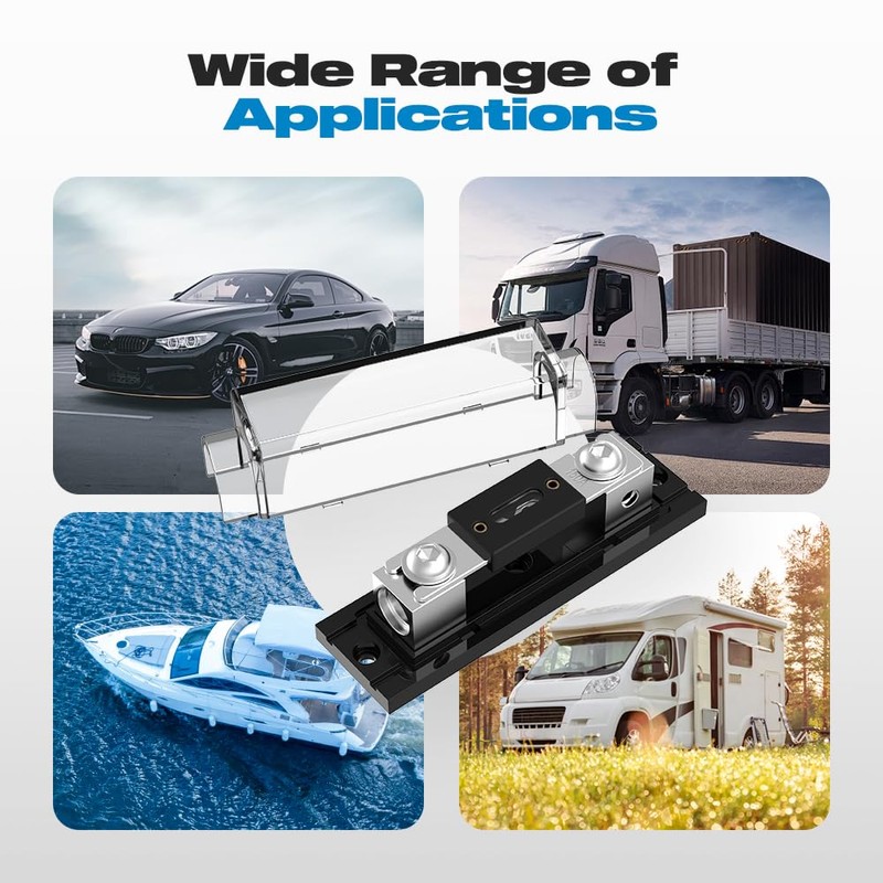 4.Features transparent, high-quality plastic housing for clear status checks and zinc alloy ANL fuse for excellent conductivity and safety.