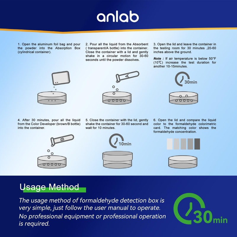 anlab⢠Air Formaldehyde (HCHO) DIY Test Kit - Used for Air Quality Testing, Detector Used for Home, Residential, Business, Hotel, Hospital, School, Furniture, Auto (Pack of 3)