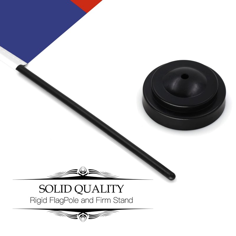 • Stronger than others - Flag measures 6 x 4 inches and is attached to 12 inches black solid flagpole and a black base. One flag set per pack.