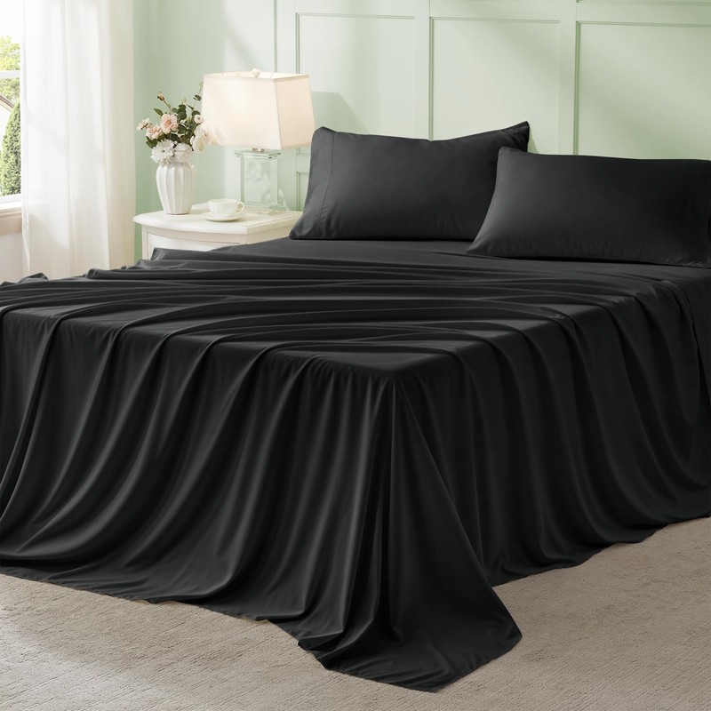 Anluoer Black California King Comforter Set 7 Pieces, Bed in a Bag with Sheets, All Season Bedding Sets with 1 Comforter, 2 Pillow Shams, 2 Pillowcases, 1 Flat Sheet, 1 Fitted Sheet