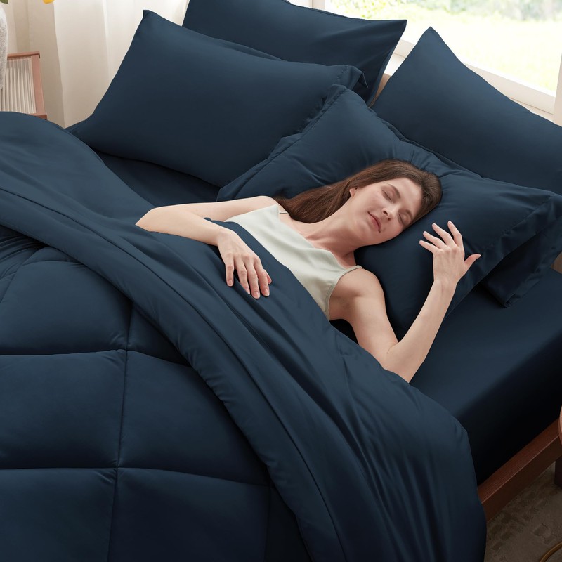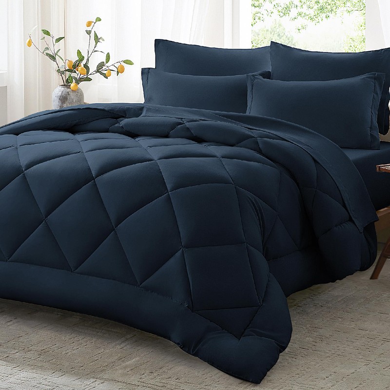 Anluoer Queen Comforter Set,Navy Blue Bed in a Bag 7 Piece,Lightweight Bedding Set with Soft Down Alternative Fill,Bed Set Includes Comforter, Fitted Sheet, Flat Sheet,Pillowcases and Shams