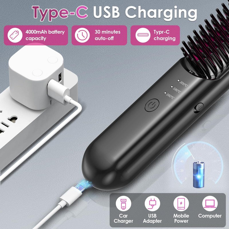 - 【Kabelloser Haarglätter】 Die Kabelloser Haarglätter ist mit einem wiederaufladbaren 4000-mAh-Akku ausgestattet, der einfach über ein USB-Typ-C-Kabel aufgeladen werden kann und eine Standby-Zeit von 60 Minuten hat, wodurch der Ärger mit Kabeln und die Unannehmlichkeiten der Verwendung von Steckdosen vollständig vermieden werden.