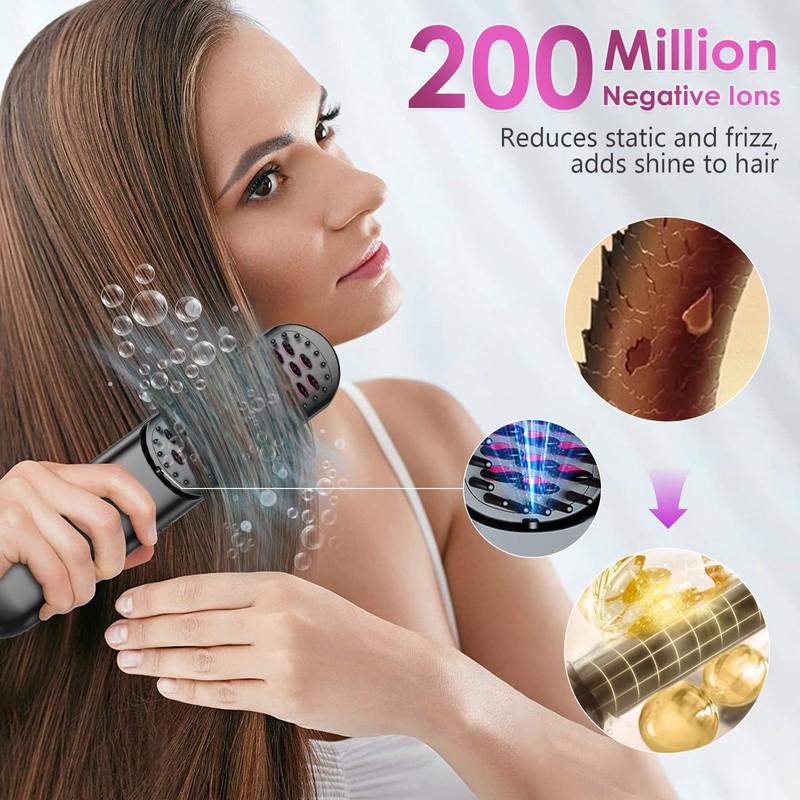- 【Negative Ionen-Technologie】 Die Glättungsbürste setzt beim Erhitzen negative Ionen frei, und die negative Ionen-Technologie kann Kräuseln und statische Elektrizität wirksam unterdrücken und so Haarschäden reduzieren. Jedes Kämmen kann Ihr Haar glatter, weicher und glänzender machen, wodurch Haarbruch und Spliss reduziert werden und Ihr Haar gesünder und glänzender wird.