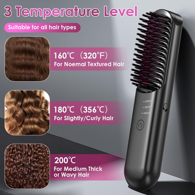 - 【3 Temperatureinstellungen】 Dieser Glättungskamm hat 3 Temperatureinstellungen: niedrige Temperatur 160 °C/320 °F, mittlere Temperatur 180 °C/356 °F, hohe Temperatur 200 °C/392 °F, die je nach Haarqualität und Stylinganforderungen frei eingestellt werden können. Die Heiztechnologie mit konstanter Temperatur wird verwendet, um Überhitzung und Schäden an der Haarqualität zu vermeiden und Ihnen ein sicheres und komfortables Benutzererlebnis zu bieten.