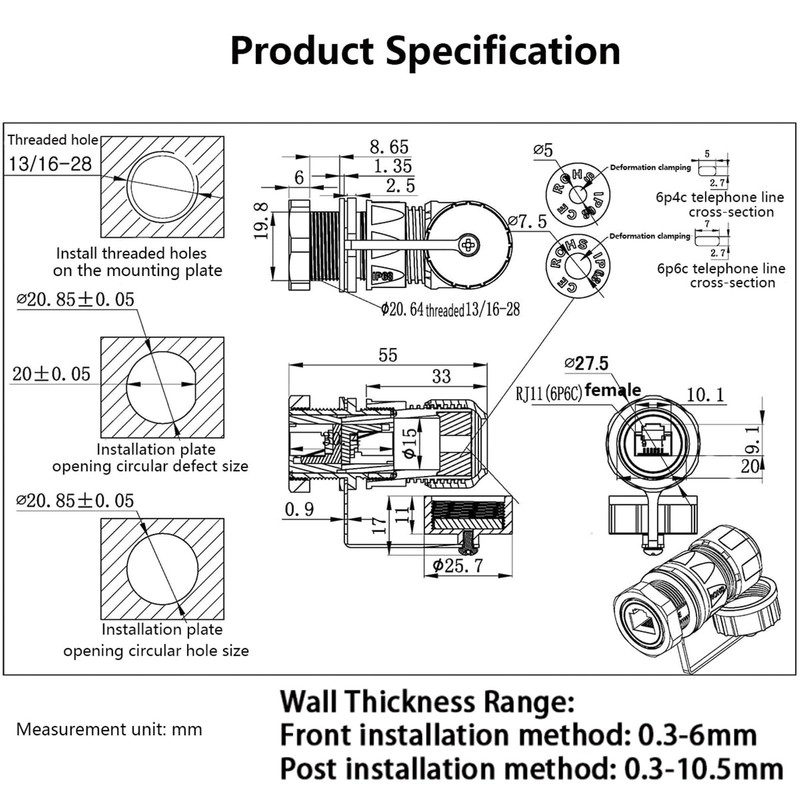 - PRODUCT FEATURES: Upgrade your telephone and DSL connections with the CAT3 RJ11 Telephone Socket Adapter, is suitable for developing customized input/output configurations for telephone communication systems, docking 6P6C/6P4C/6P2C phone cables and extending RJ12 phone jacks to your desired location.