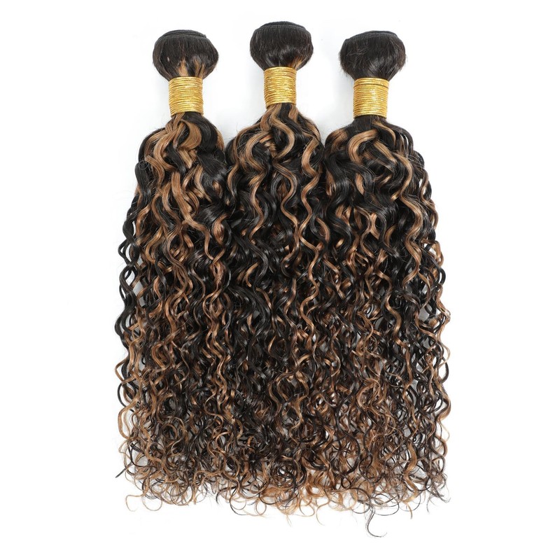 Ombre Blonde Hair Bundles Grade: brown highlight water wave human hair bundles, with more bounce, thicker ends, shinier wavy hair