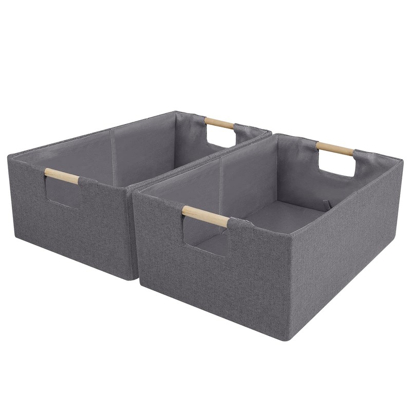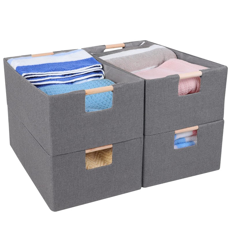 ANMINY 4PCS Storage Baskets for Organizing Collapsible Fabric Storage Bins Boxes with Wood Handles Closet Shelves Cube Organizer Bins Clothes Laundry Storage Container - Large, Gray