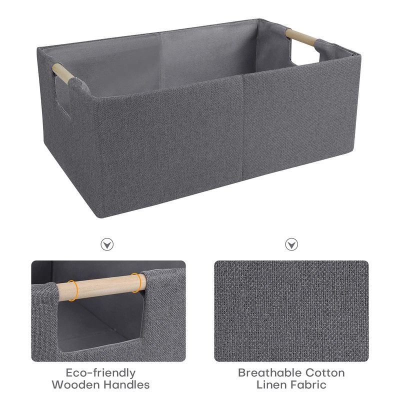 - Made of premium cotton linen fabric and 2.5mm thick cardboard, with polyester interior lining, these storage bins are simple yet classic, sturdy and durable enough for long-term use.