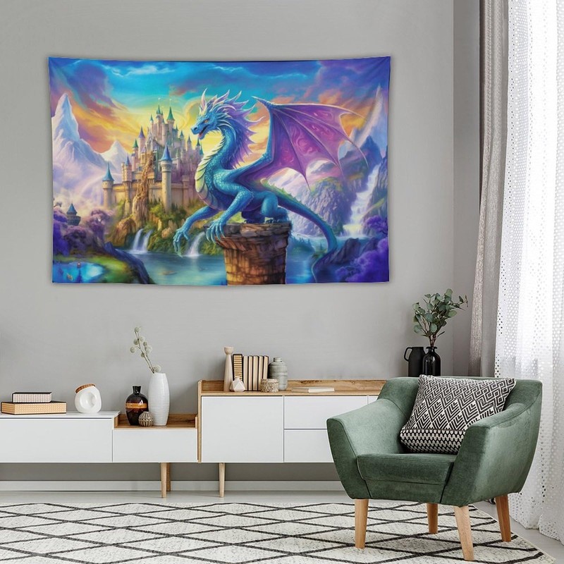 ANMOGID Dragon Tapestry Castle Wall Hanging Aesthetic Purple Blue Decoration For Bedroom Living Room Wall Art Tapestries 40"x60"