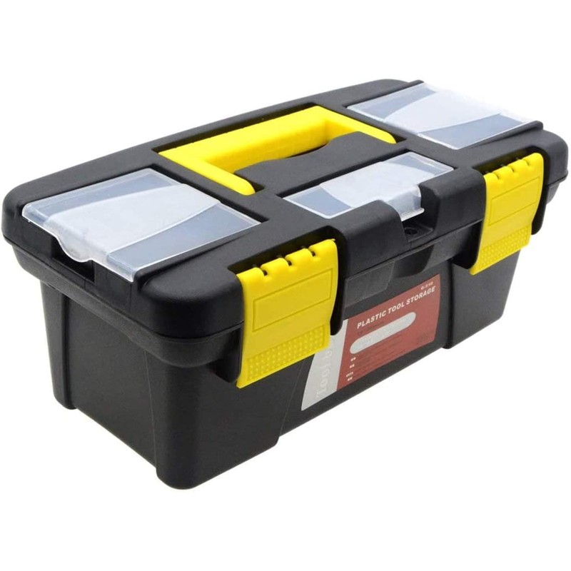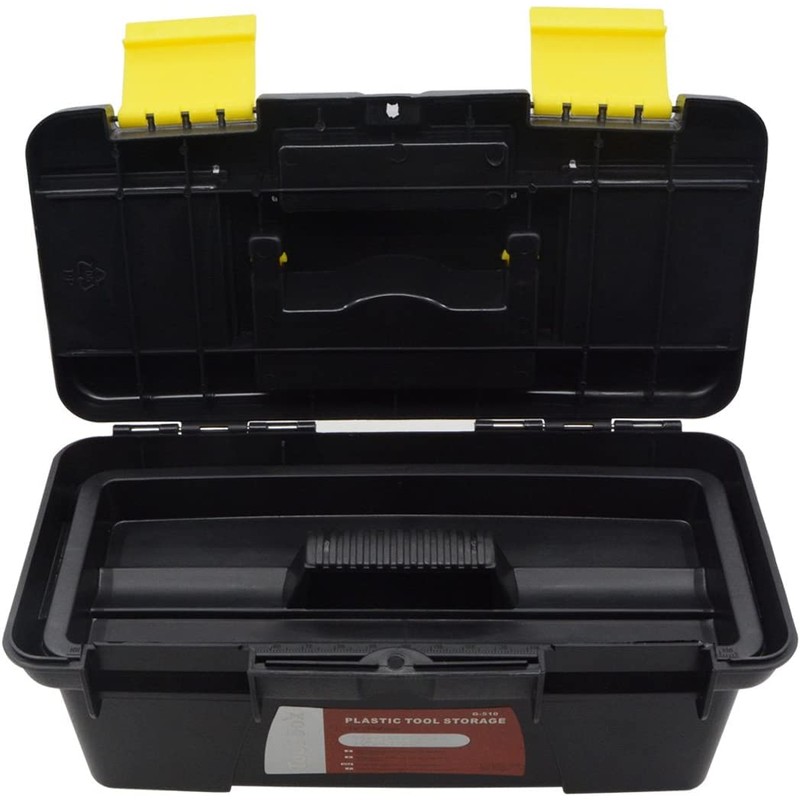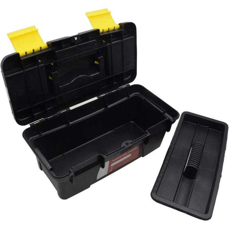 ANMOO Plastic Toolbox, 13inches Protable Tool Box Organiser With Extra Removable Tray Lockable Multi-Compartment Small Tool Box Empty For Tools Organization