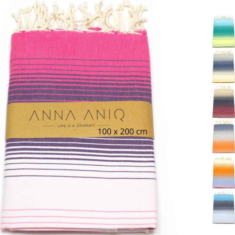 Anna Aniq Hamam Towel Fouta Sauna Towel XXL Extra Large 197 x 100 cm 100% Cotton from Tunisia as Beach Towel, Oriental Bath Towel, Picnic, Yoga, Scarf, Peshtemal, Beach Towel, 100 x 200 cm