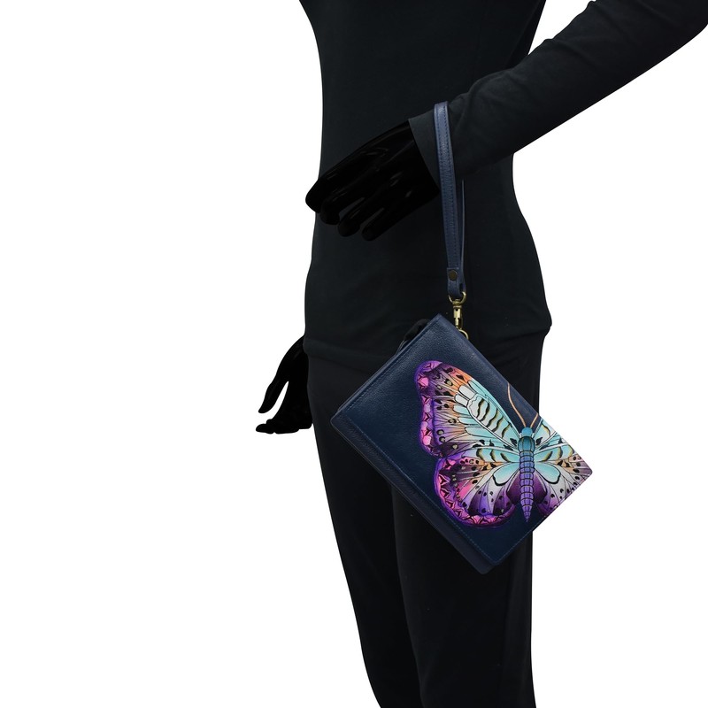 - MAGICAL WINGS NAVY ARTWORK - Each wallet is hand-painted to create a piece of art inspired by nature and vintage themes. Get lost in the mesmerizing colors and patterns used to paint this fluttering creature painted on a navy backdrop