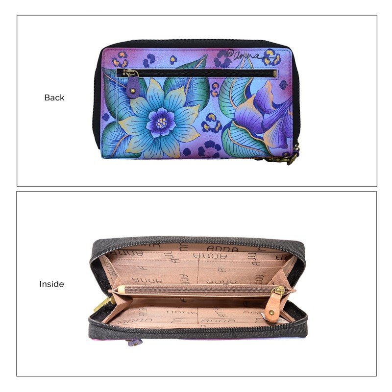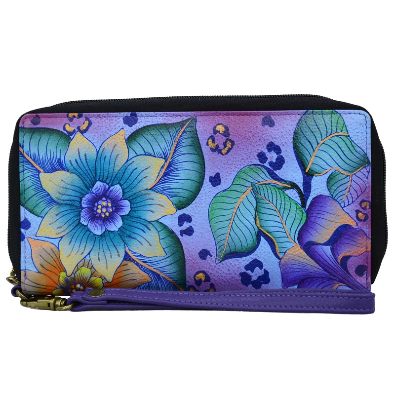 Anna by Anuschka Women's Hand Painted Leather Zip-Around Clutch Wallet, Tropical Safari, One Size
