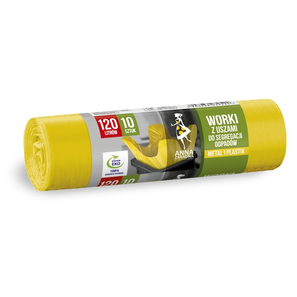 Anna Fadna Ear Bags for Waste Separation Plastic, Metal, 120 L, 10 Pieces, Yellow