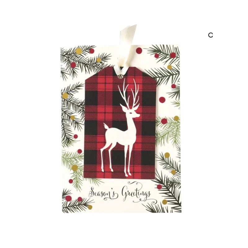 Anna Griffin, "Deer on Plaid" 3 Dimensional Boxed Christmas Cards, 10 Count