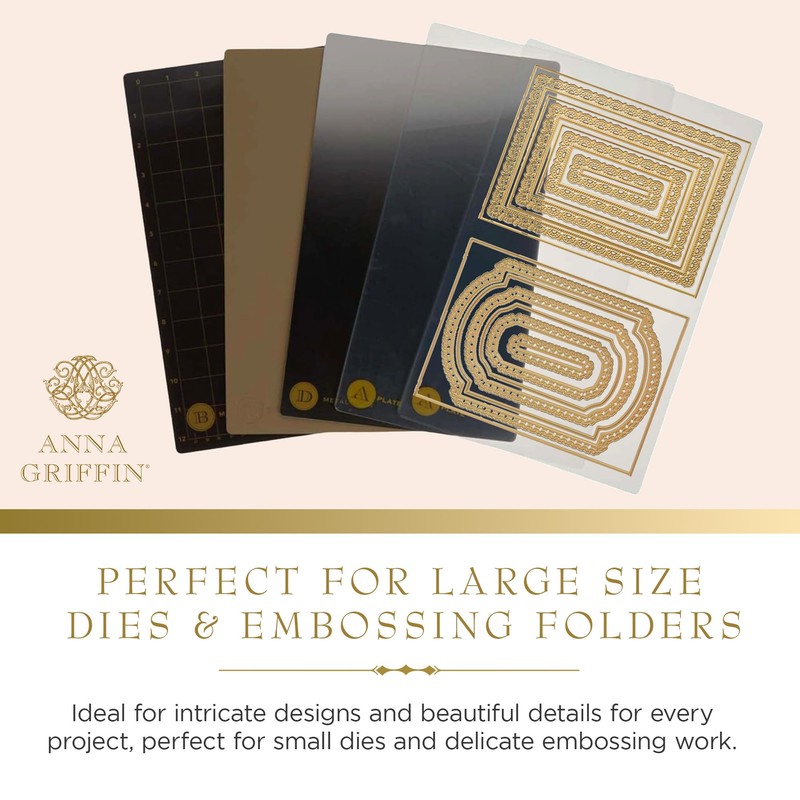 - BUILT TO LAST & DELIVER CONSISTENT RESULTS: Craft with peace of mind knowing that the Anna Griffin Empress Large Full Plates are designed to withstand repeated use. The magnetic mat ensures a secure surface for die-cutting, while the included metal shim expands your creative options by enabling the use of non-Anna Griffin dies and folders. Enjoy durability, versatility, and exceptional results with every crafting project.