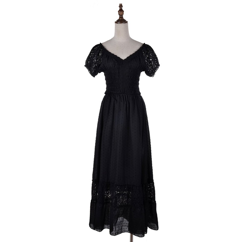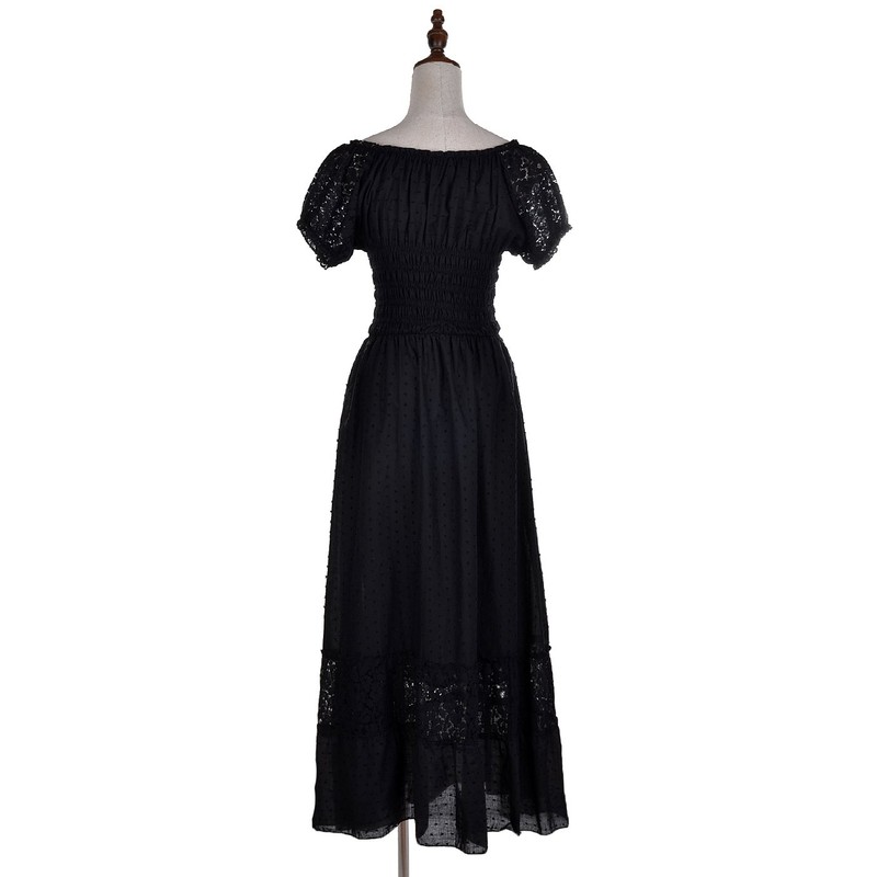 - LOVELY, DEATILED RENAISSANCE MAXI - This is a beautiful long sun dress with a smocked waist and floral lace accents. Can be worn on and off the shoulder.