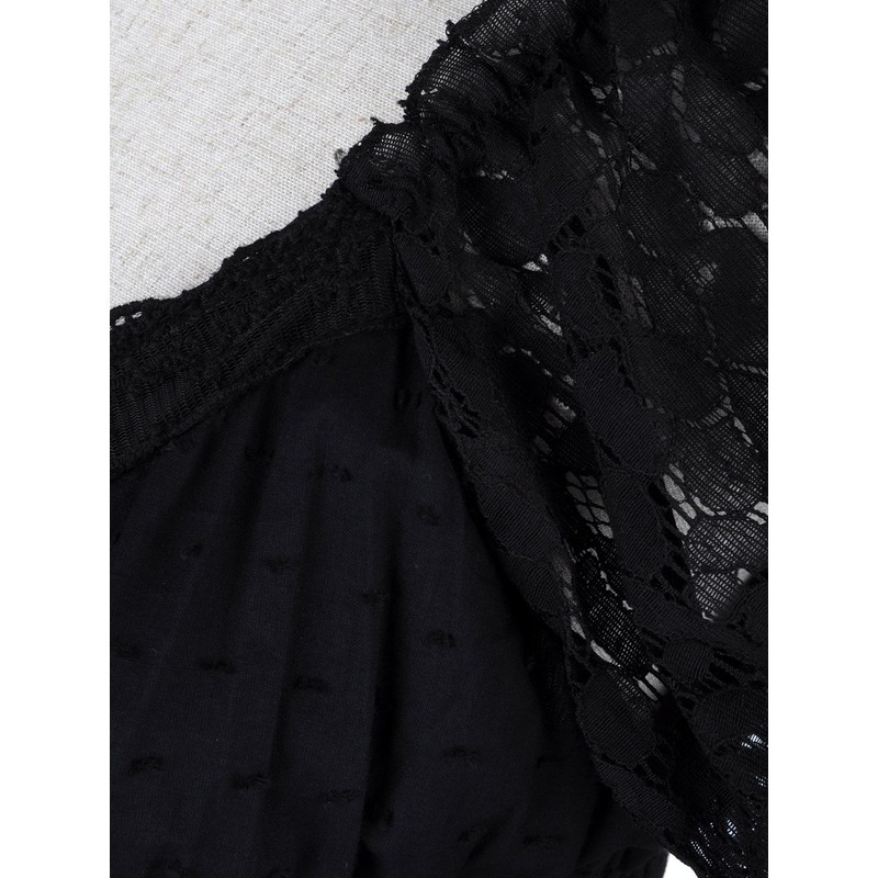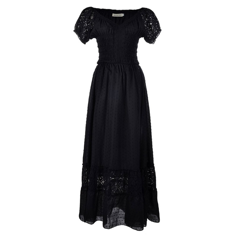 Anna-Kaci Renaissance Peasant Maiden Boho Inspired Cap Sleeve Lace Trim Maxi Dress, Black, XX-Large