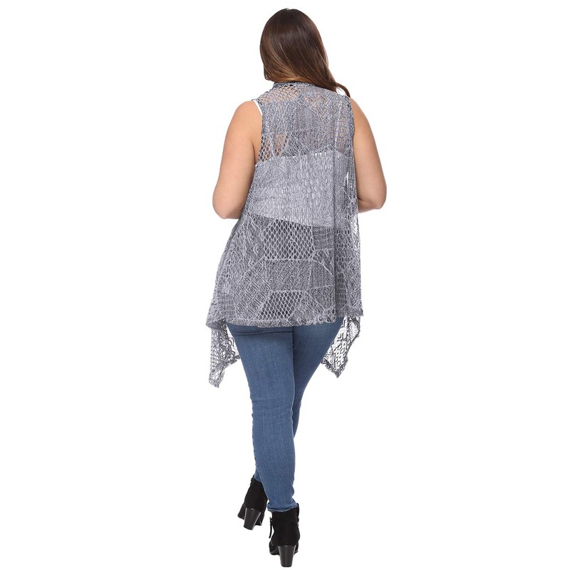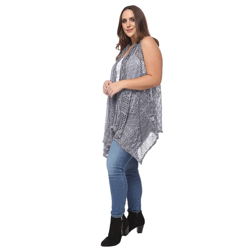 Anna-Kaci Women's Plus Size Bohemian Draped Open Front Crochet Bikini Cover Up Cardigan Vest, Grey, XX-Large-3X-Large