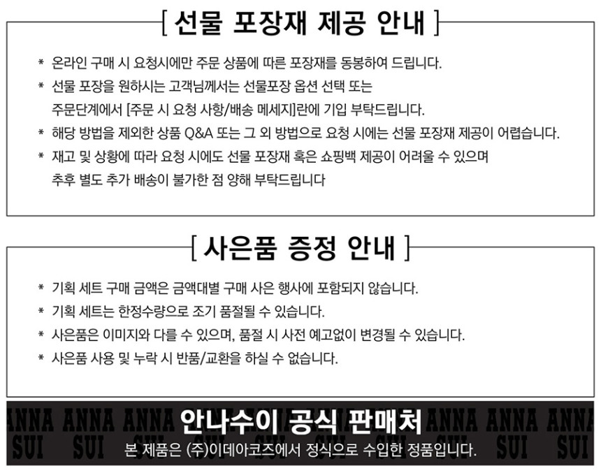 - Consumer consultation phone number: Anna Sui //02-6905-8954