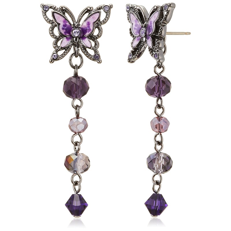 ANNA SUI SAMA1420 XV Butterfly Motif 2-Way Earrings, Purple, Metal, No Gemstone