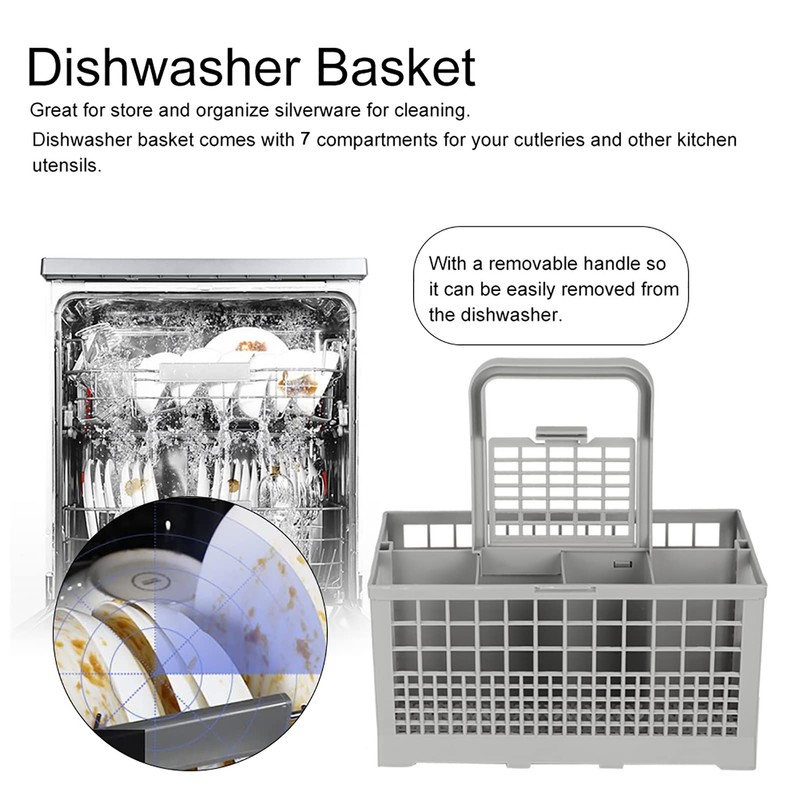 - The dishwasher basket has 8 compartments for your cutlery and other kitchen utensils.