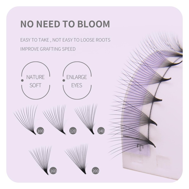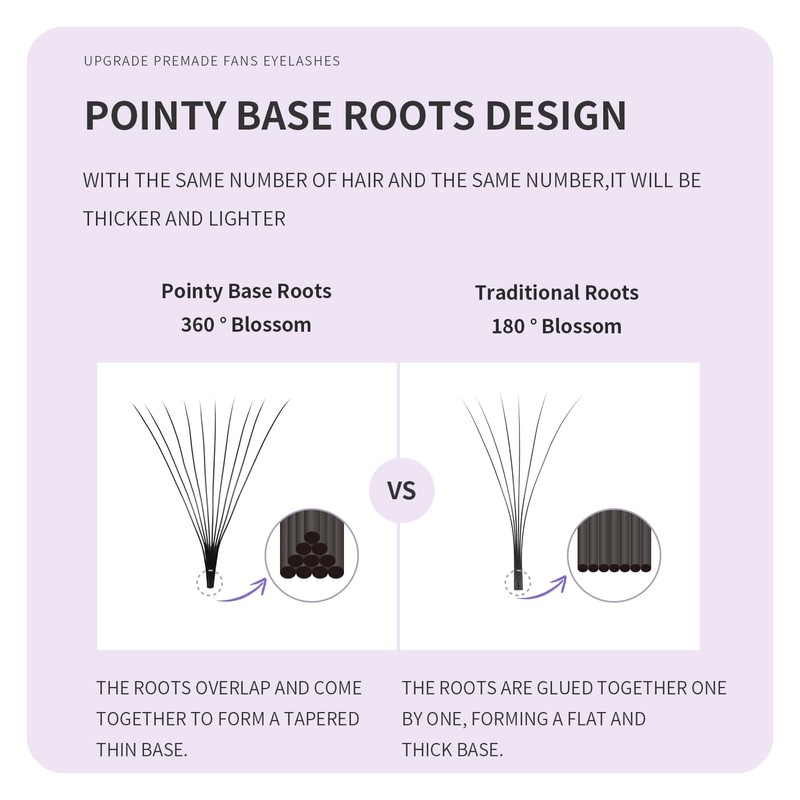 - Pointy base: the pointed eyelashes have a pointed base, which could make the eyelash extension more invisible. With pre-made fan eyelashes, you can easily create mega-volume looks to make your eyes more attractive.