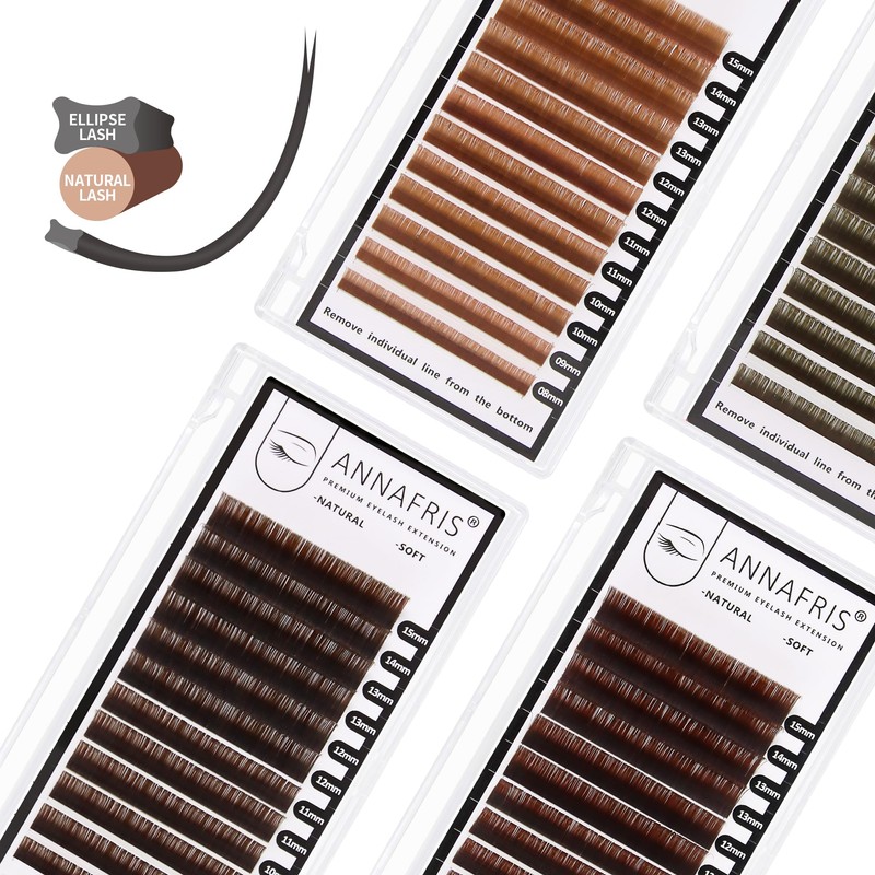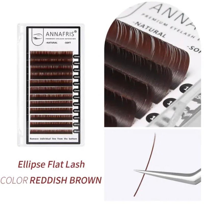 ANNAFRIS Ellipse Flat Eyelashes Extension Natural Soft Matte Black Faux Mink Individual False Lashes Split Tips Light Eye Lashes Extension Supplies (0.15 C, Reddish Brown 8-15mm Mix)