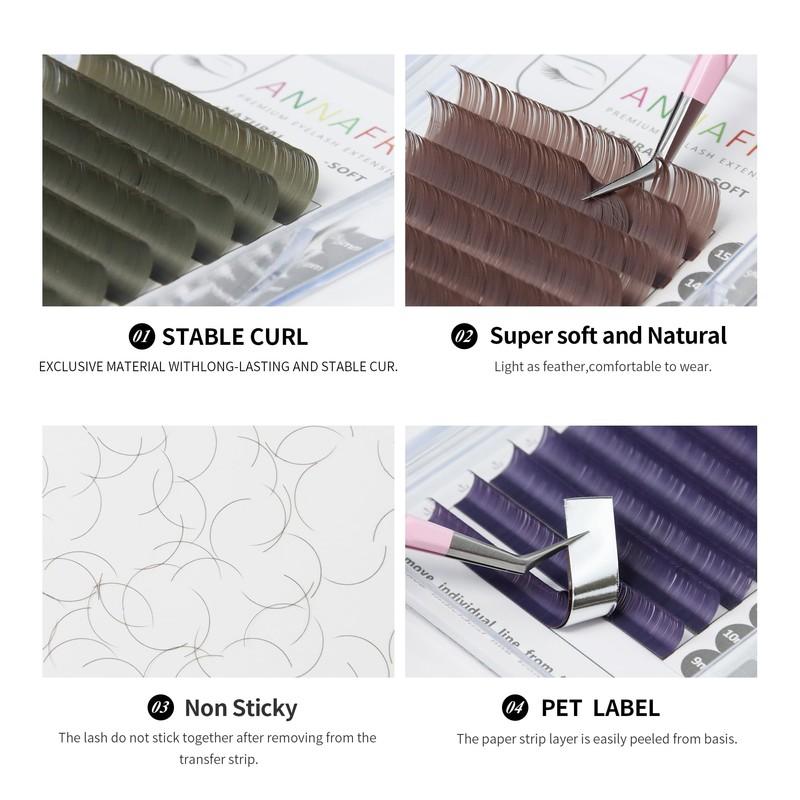 - High Quality Material The raw material for ANNAFRIS eyelashes is BASF, which is lightweight, natural and soft. Coloured eyelashes do not fade, and the curvature can be maintained for more than a year