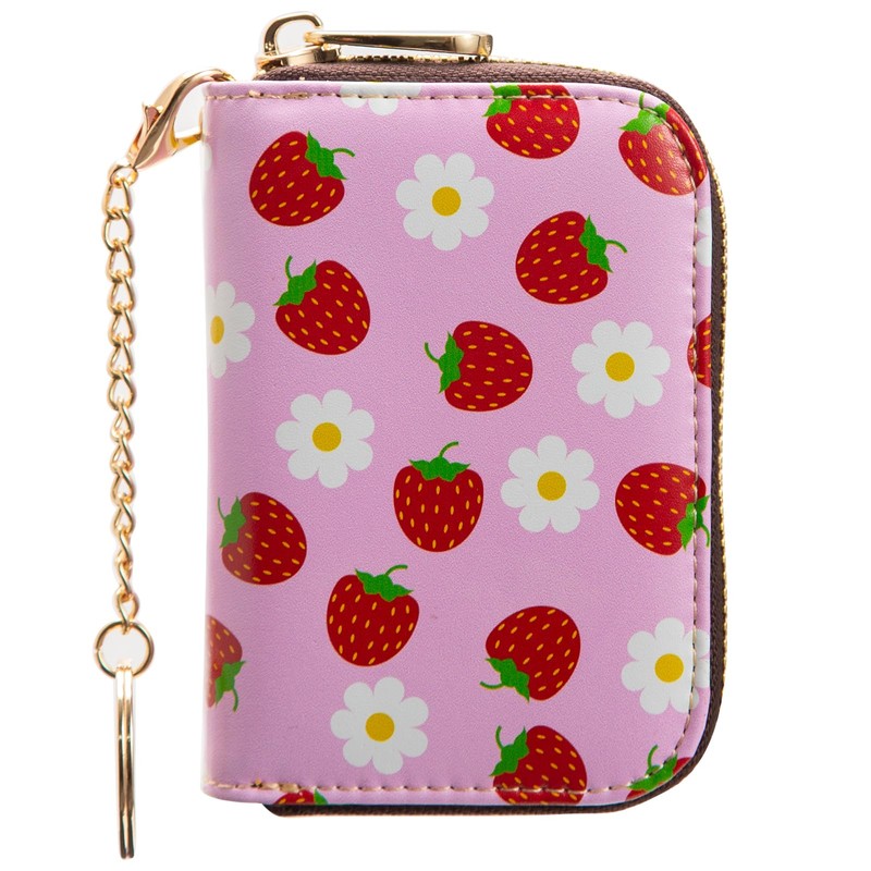 ANNAMISSI Rfid Credit Card Holder,Wallet Women Organizer Accordian Men Minimalist Wallet,Card Holder Keychain, Pink Strawberry, Multifunction