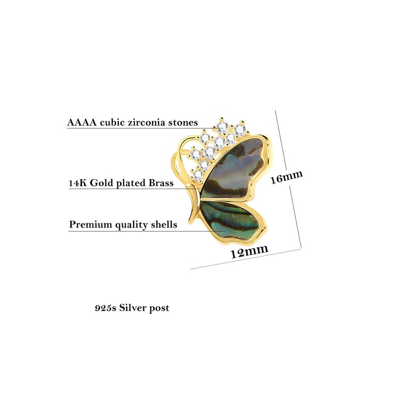 - Ideal Present : These butterfly studs are a whimsical addition to any ear stack.Delicate,noble and youthful,these shell butterfly earrings make the flawless birthday or Christmas present for friends and family members.Featuring modern styling with colorful CZ stones,showcasing a noble and sophisticated aura,also great for Mom,wife or friends
