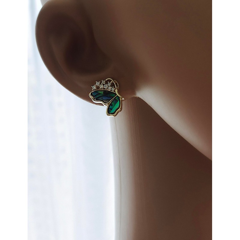 AnnBabic Abalone Shell Butterfly Stud Earrings for Women - Cubic Zirconia Crystals Half Butterfly Earrings in 14K Gold