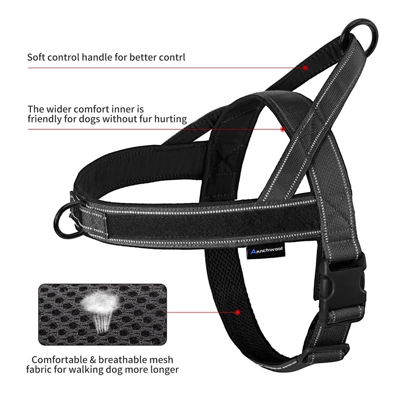 Annchwool No Pull Dog Harness with Soft Padded Handle,Reflective Strip Escape Proof and Quick Fit to Adjust Dog Harness,Easy for Training Walking for Small & Medium and Large Dog(Black,M)