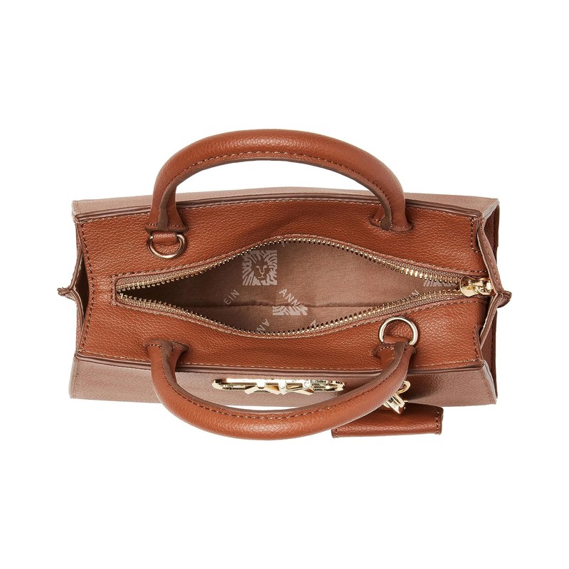 Anne Klein Women's Convertible Mini Satchel with Ak Bevel Logo, Chestnut, One Size