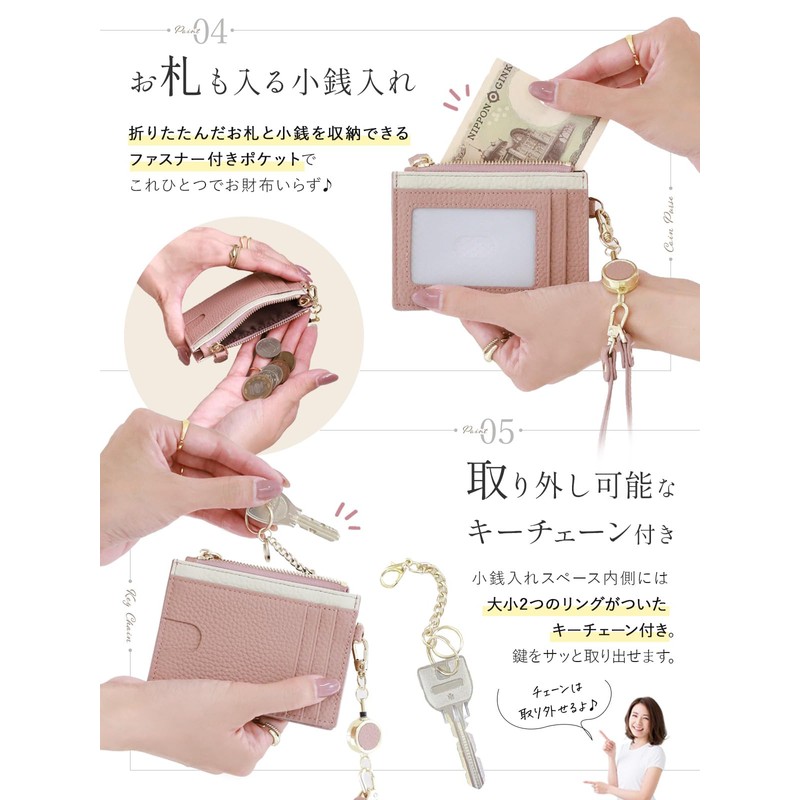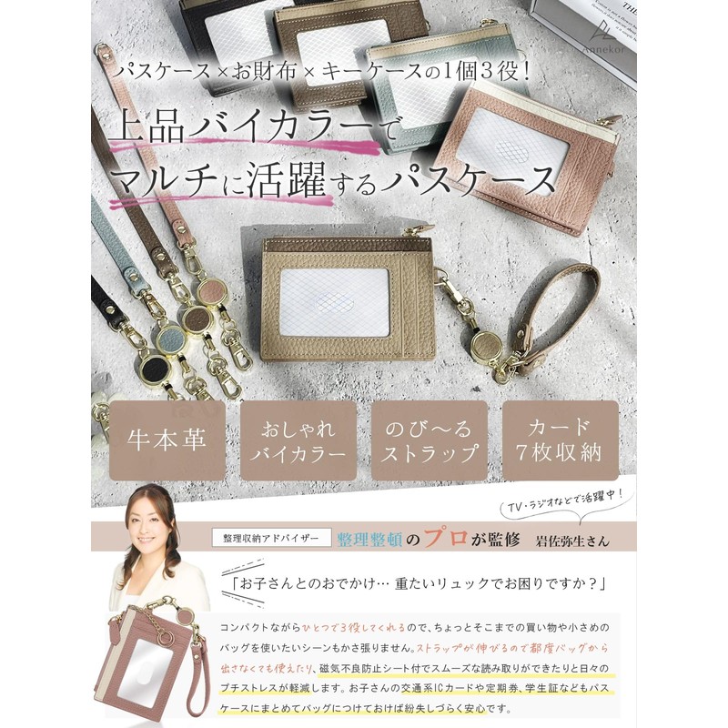 Annekor Pass Case, Genuine Leather Passcase, Coin Purse, Includes Reel, Key Case, IC Card Case, Smart Key, Mini Wallet, Strap, Magnetic Error Prevention, Men's (Encore) (Smokey Pink)