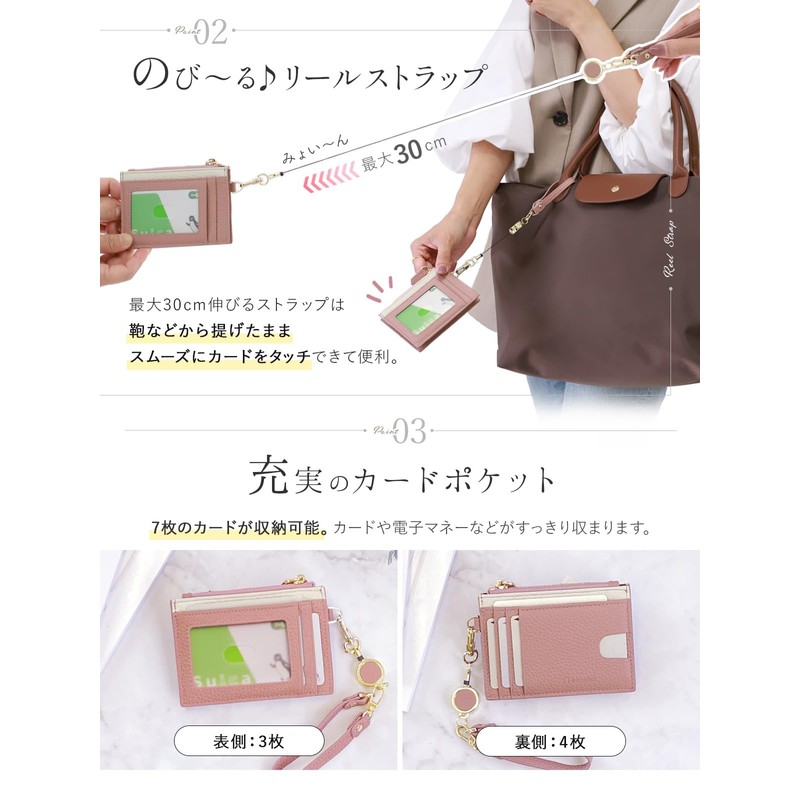 - Convenient Reel Included: When using an automatic ticket gate or company card reader, the strap with a reel that can be extended up to 11.8 inches (30 cm). It stays attached to the bag and allows reader to be read without dropping the body